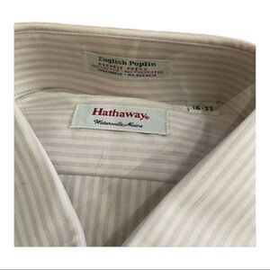 Price is for both. Both poly cotton size 16” collar and 33” arm. One is white and pale lavender striped the other pale blue.