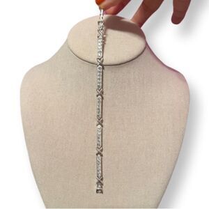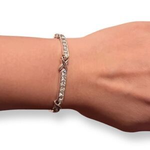 Napier tennis bracelet with rhinestones and X design. It is 7” long with a fold over clasp. This is a vintage item so there is some slight wear on it please be aware.