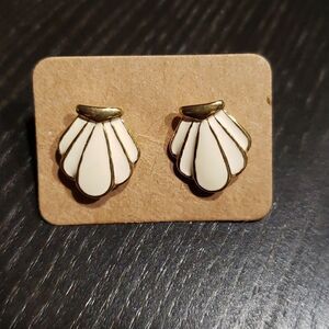 Vintage Napier Enamel and Goldtone Seashell Sea Shell Stud Earrings