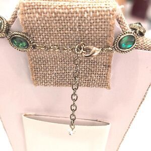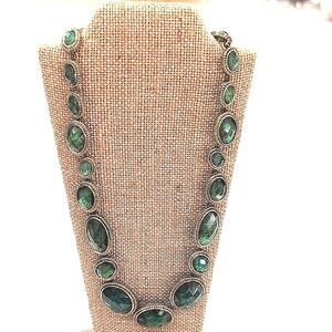 This stunning necklace features vibrant green stones set in a classic design. Perfect for adding a touch of elegance to any outfit.