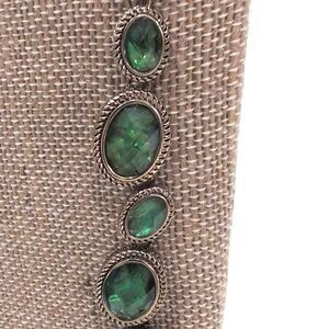 Beautiful iridescent oval green cabochon stones set in a goldtone rope bezel setting.