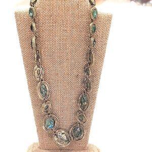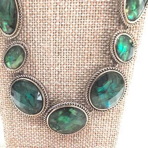 Vintage Napier Iridescent Green Graduated Cabachon Stone Necklace