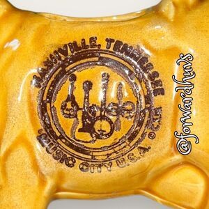 This is a cute cow creamer from Nashville Tennessee Music City USA. This is a fun guy with a few small chips but no cracks or repairs done. The small chips can be seen in the photos.