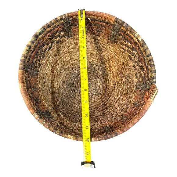 Some damage on the rim, with frayed fibers visible. Diameter = 12 inches, Height = 5 inches.