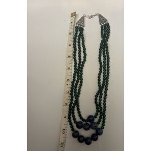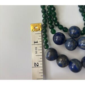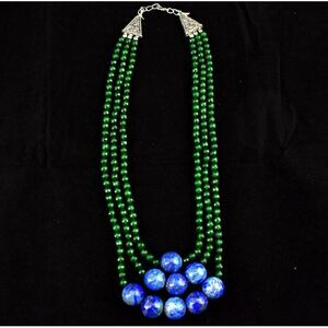 Vintage Natural 3 Strand Onyx / Lapis Lazurel Round Beads Necklace