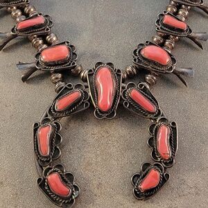Vintage Navajo 1960's Red Coral Squash Blossom Necklace