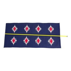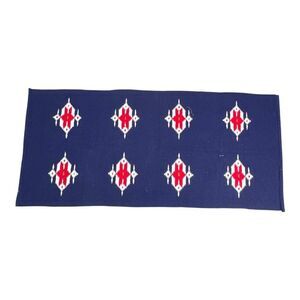 Vintage Navajo Inspired Southwest Woven Rug Geometric Red White Navy Blue Runner