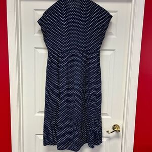 Vintage Navy Polka Dot Cap Sleeve Button Down Dress sz L