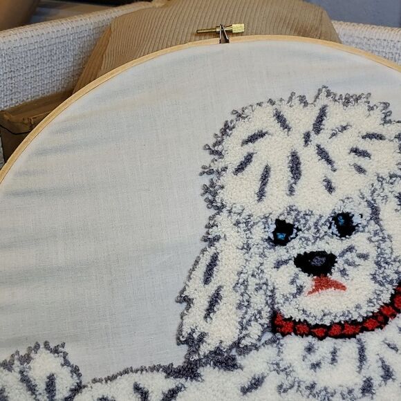 Vintage Needlecraft Poodle Dog 14" Wall Hanging on Muslin Handmade