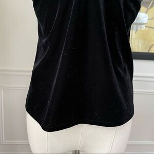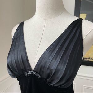 Vintage Y2K Neiman Marcus black velvet and satin cami tank top. Satin Pleated bust give flexibility to cup size. Slightly cropped at 20” shoulder to hem and 15” armpit to armpit while laying flat, but as mentioned the pleating gives flexibility to cup size. The velvet torso has some stretch. No size or fabric content tag, but based measurements it’s approx a modern size XS, but please double check the measurements to ensure a proper fit for you.