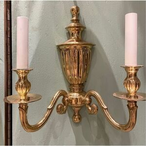Vintage Neoclassical Style Solid Brass Wall Sconse 2 Light Arm Urn Design