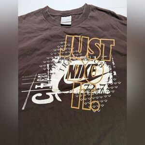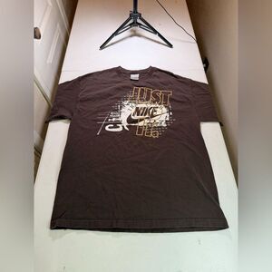 Vintage Nike Just Do It Men's XL Brown Track Club Swoosh Spellout T-Shirt
