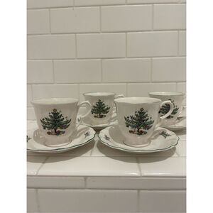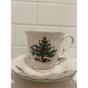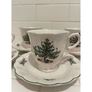 Nikko Christmastime Footed Teacups Woth Saucers, set of 4
