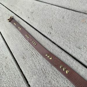 Beautiful vintage Nine West leather belt with metal heart and stud embellishments. Nice broke in condition but no flaws.