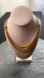 Triple strand gold necklace with silver accents. Adds elegance to any look.