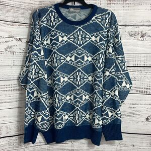 Vintage North country Eaton Sweater Mens XL knit geo print Wool Blend crew Neck