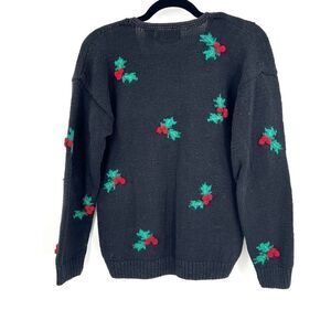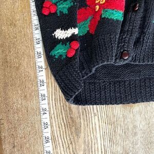 Vintage Northern Isles Christmas Cardigan Sweater Poinsettia & Mistletoe medium