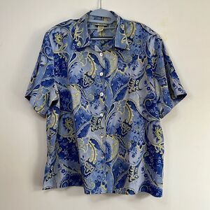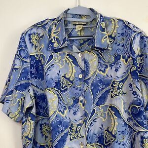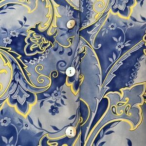 Vintage Notations Blue/Yellow Shirt - XL Sz 38 / 18W Mother of Pearl buttons