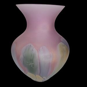 Vintage Nouveau Art Glass Hand Painted Vase by Rueven