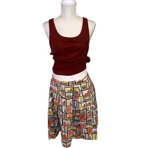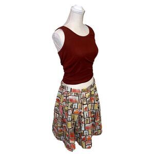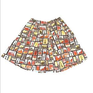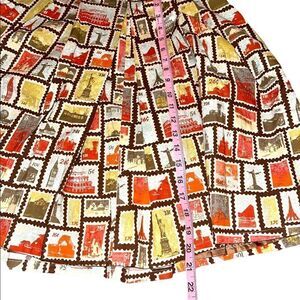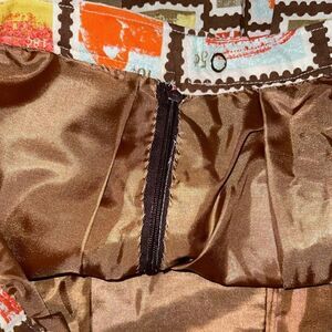 An amazing statement piece! Features a fun stamp print. Vintage novelty. Unbranded with no material or size tags so please review measurements. Fully lined. Zipper & button closure. Has pockets.