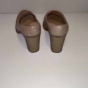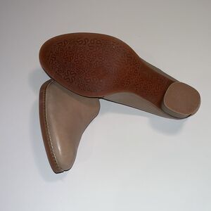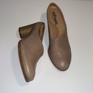 Vintage Nwot Softwalk tan leather 3” heel mules/ clogs