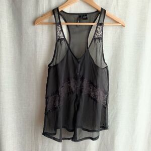 Vintage O’Neill Black Sheer Lace Tank Top Y2K Boho Festival Layering Piece