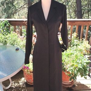 Vintage. Classic coat dress. Button down front is hidden. Notched collar. Long sleeves. Fully lined. Measures 35 at chest, 31 at waist, 42 at hips, 40 long from shoulder to hem. This is a classic look, that will last forever.