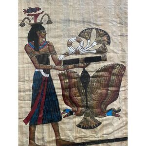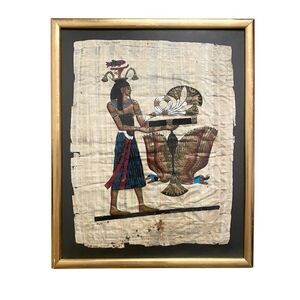 Vintage Egyptian Papyrus Paintings in Gold Gilt Frame