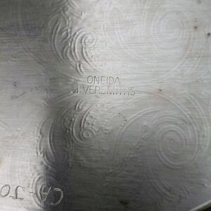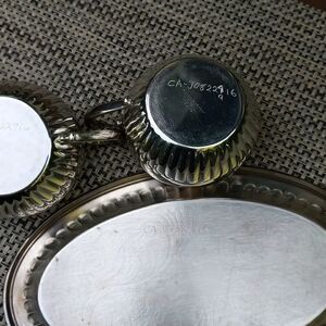 Vintage Oneida Silversmiths Cream, Sugar and Plate Set. In great condition, with minor imperfections, normal with aging.