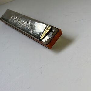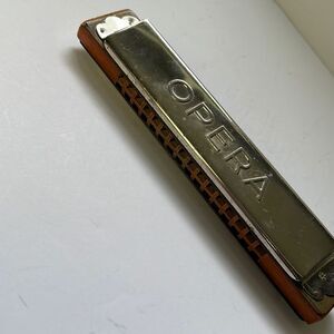 Made in Germany, this Opera harmonica would be a good starter instrument. It measures approximately 7.5" x 1" x 1" GUC