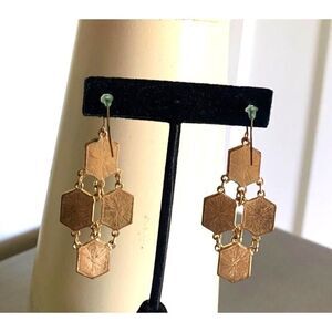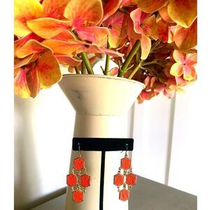 Vintage Orange Snakeskin Hexagon earrings, in Gold tone, Unmarked