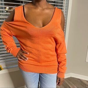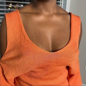 Vintage Orange Cutout Cold Shoulder Double V neck Sweater