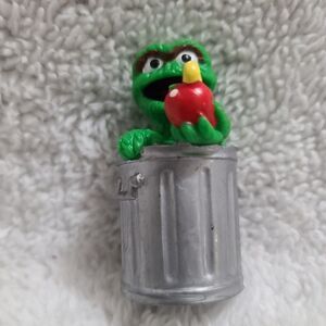 Vintage Sesame Street OSCAR THE GROUCH & SLIMEY WORM Figure APPLAUSE 2.5" PVC In gently used condition