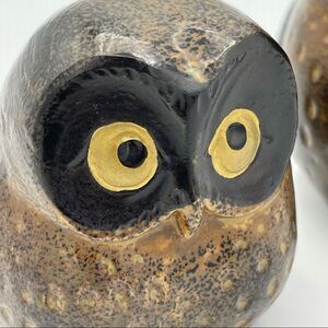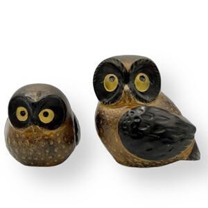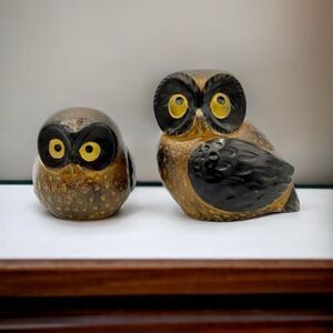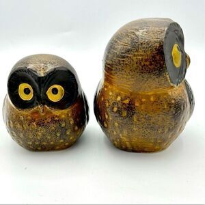 Set of (2) Owl Stoneware Pottery Ceramic Owl Figurines