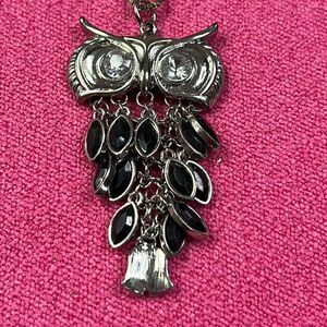 Vintage Silver Tone Owl on gorgeous long subtle gold tone chain Beautiful! Measurements in pics