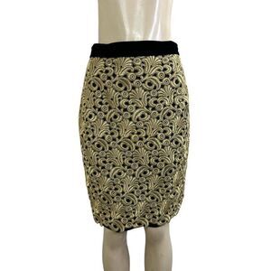 Experience ultimate comfort and style by wearing this glamorous Peggy Jennings pencil skirt. Refresh your evening closet with this alluring floral print, gold skirt.