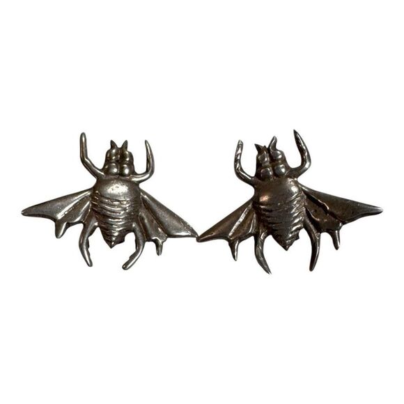 Crafted in Mexico, this vintage brooch pair showcases intricate bug designs in silver. A statement accessory suitable for collectors or unique styling.