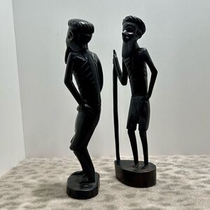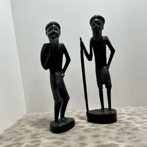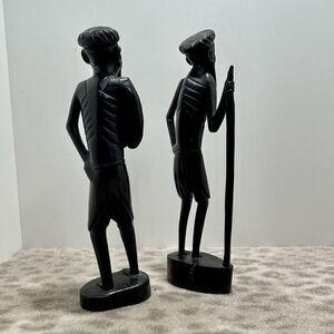 Vintage Pair of Hand Carved Tanganyika East African Tribesmen Statues Ebony 10”H