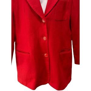 Vintage Panther 100% Wool Red Button Up Blazer Jacket Size 14