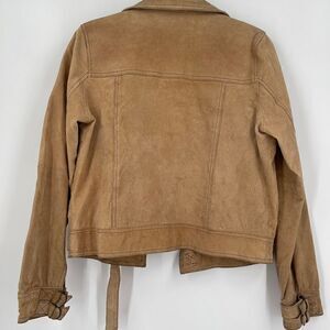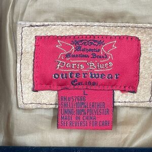 Vintage Paris Blues Tan suede full zip jacket. This jacket has no holes or flaws. Could use a good cleaning besides that in great condition. Please see photos for details.