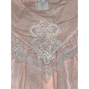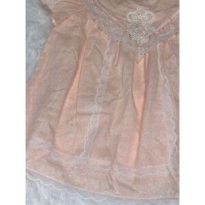 Vintage Pastel Gunne Sax Cottagecore Dress. Pastel light pink coral small floral print. Tiered lace trim. Lace trim. Zipper back closure. Lightweight cotton blend. Made in the USA. Great vintage condition. 24Months