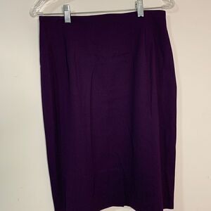 Skirt: Lined, straight, no waist, rear zipper, rear kick pleat. Length 23"