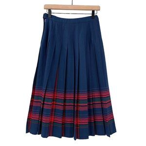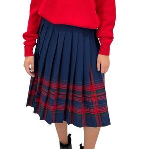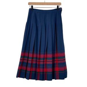 Vintage Pendleton Wool Skirt Pleated Accordion Midi Length Navy Red Plaid | 6 P