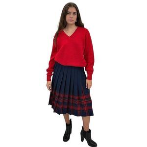 Vintage Pendleton wool pleated accordion midi skirt in navy blue and red plaid. Size zip and button closure. !00% virgin wool and MADE IN THE USA!