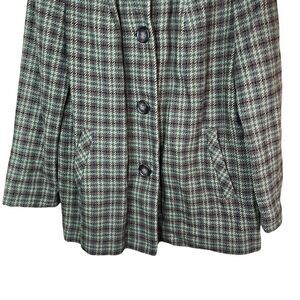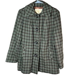 Vintage Pendleton 100% Virgin Wool plaid coat. Green brown plaid. Good condition, there is a hole/flaw in the pocket. See pics for condition and measurements. No size tag.