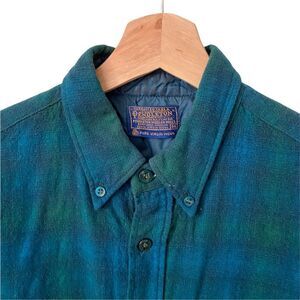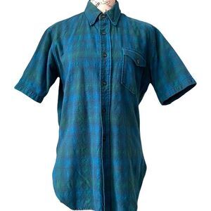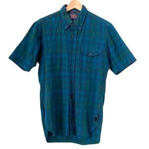 Vintage Pendleton Plaid Short Sleeve Front Button Pure Virgin Wool in Size Medium