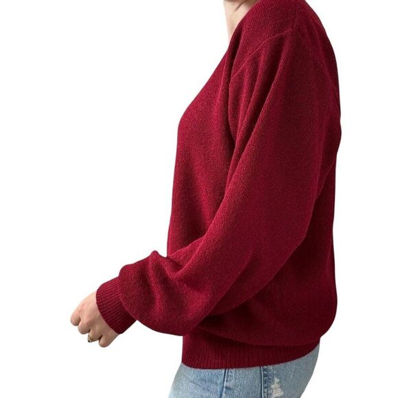 Vintage Peruvian Connection Cherry Red V Neck 100% Alpaca Oversized Sweater Sz M