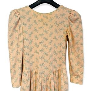 Vintage Petite Lanz Bow Print Pullover Puff Sleeve Dress w/ Pockets Size 6