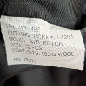 Details: Interior shoulder padding for structure, three buttons on the cuff, and interior pocket with care/content label.
