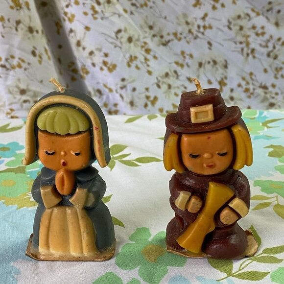 Vintage Pilgrim Pair Thanksgiving Candles, W&F Manufacturing